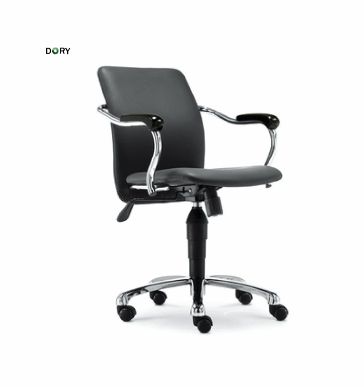 Visitor chair with Hard PVC back with lumber Support, with fixed, Wooden arm pad, Chrome Frame.